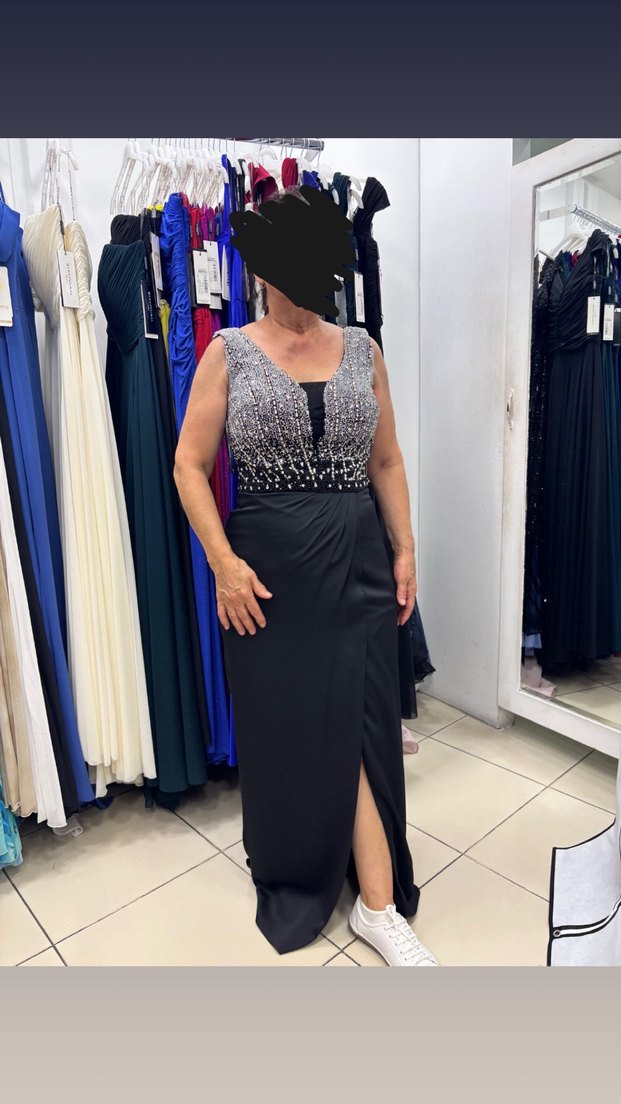 Göğüs kısmı taş detaylı , yırtmaçlı abiye elbise