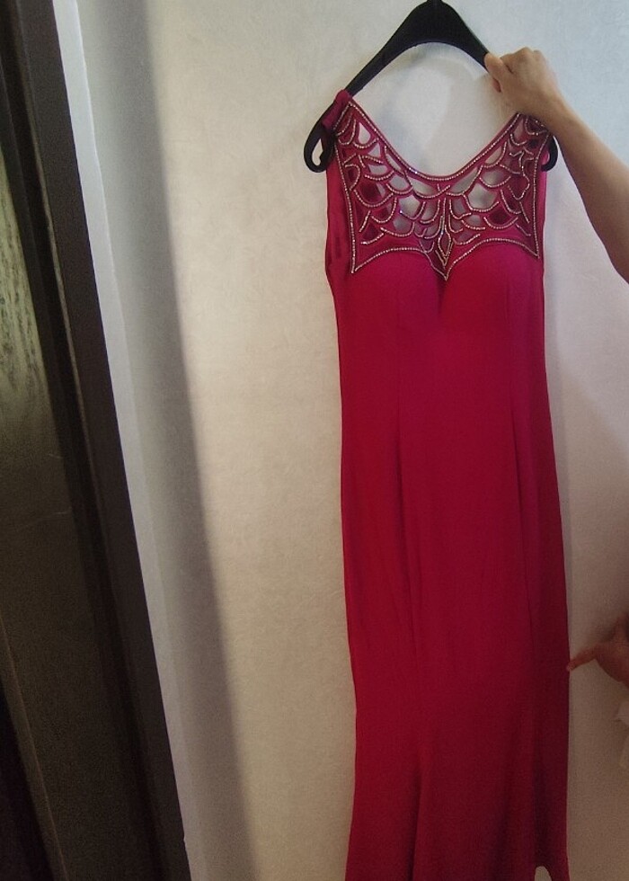 Elbise sadece bir defa giyildi. Herhangi bir defo veya lekesi yok. Elbise omuzdan itibaren 145 cm ve 38 beden.