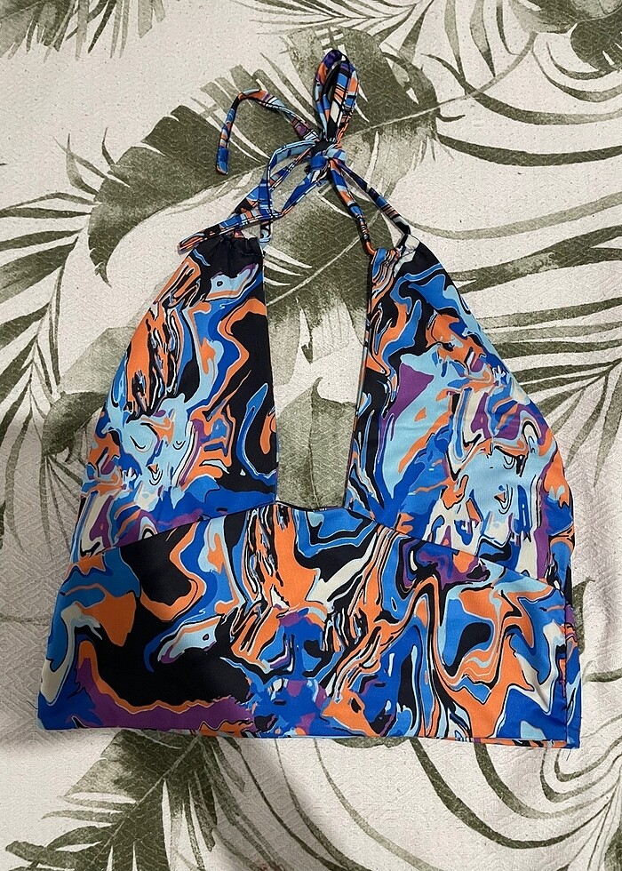 Boyundan bağlamalı göğüs ve sırt dekolteli crop