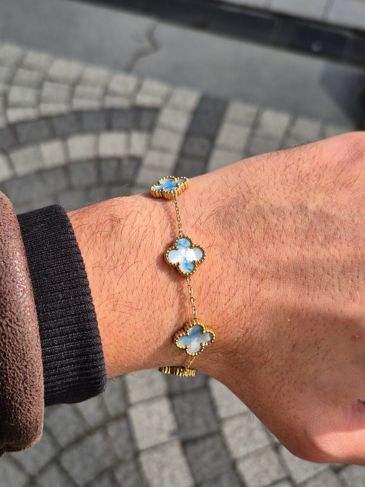 Gök Mavisi Van Cleef Yonca Unisex Çelik Bileklik