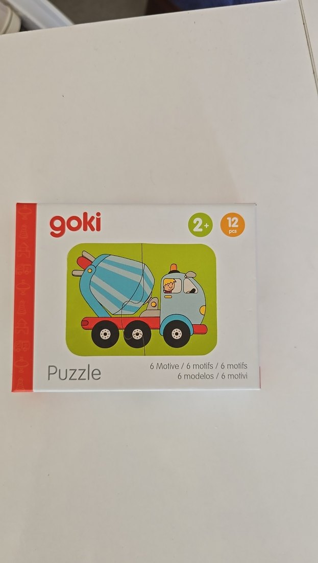 Almanyadan aldığım Goki markasının 12 parçalı bebeğiniz için sağlıklı olan ahşap maddeden yapboz seti, 2 yaş ve üzeri çocuklar için 6 farklı taşıt motifi içerir. Motor becerileri ve tanımayı geliştirir.
