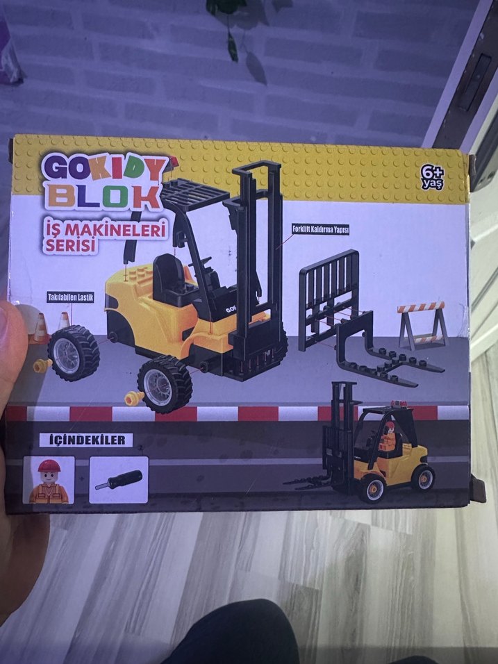 6 yaş ve üzeri çocuklar için sarı renkli Gokidy Blok İş Makineleri serisi forklift oyuncak. İçinde figür ve aksesuarlar bulunur.