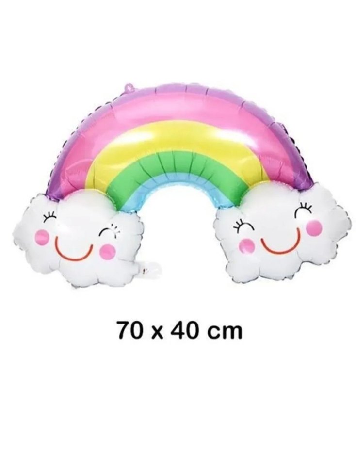 70x40 cm ölçülerinde, gülümseyen bulutlu pastel renkli gökkuşağı balon, parti süslemelerine neşe katar. Helyuma uyumludur. Uçan balon veya hava ile şişirerek kullanabilirsiniz. #folyobalon #uçanbalon #gökkuşağıbalon #bulutbalon