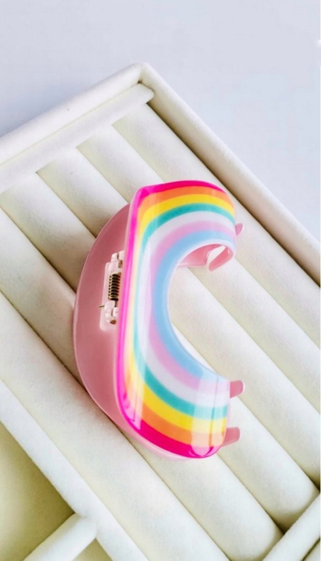 Kemik malzemeden yapılmış, gökkuşağı desenli saç tokası. ✨