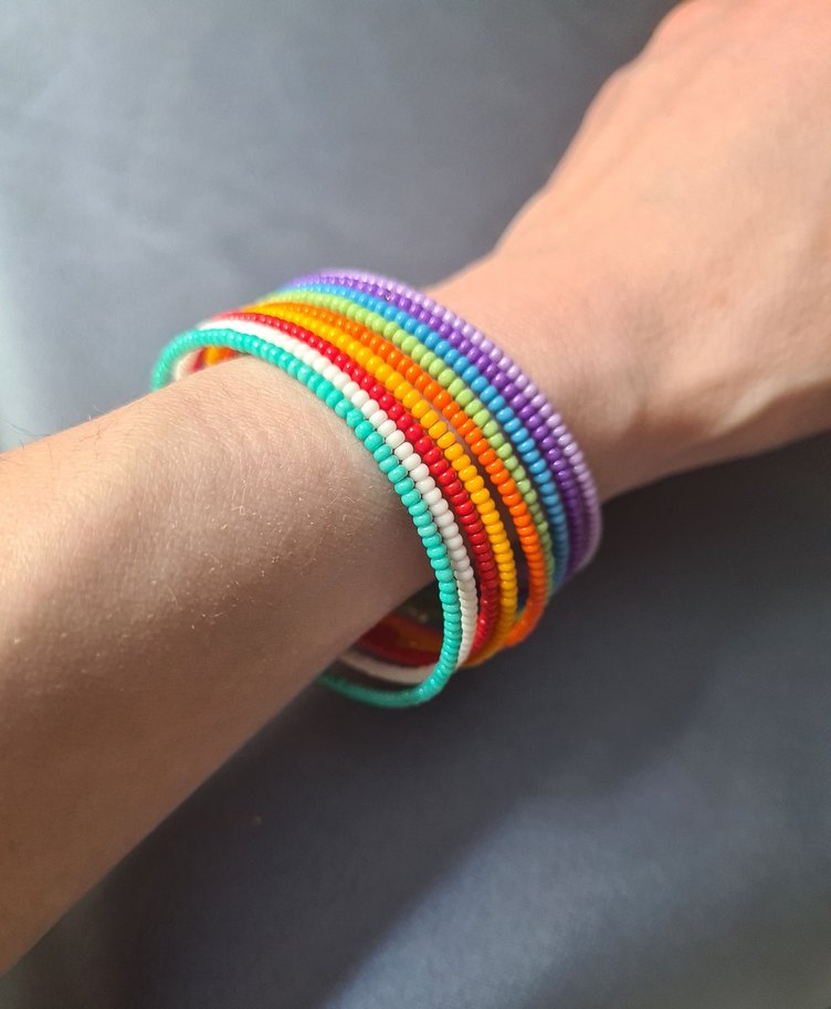 Gökkuşağı Renkli Boncuklu Kadın Bileklik (Tek sıra adet fiyatı)