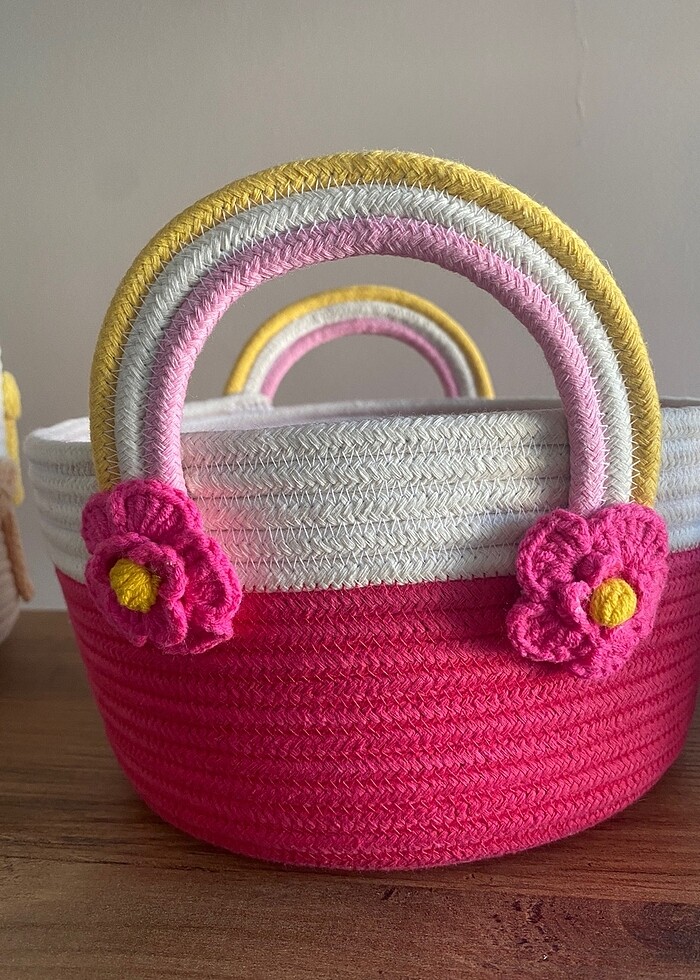 Ürün 100/100 pamuk tress kordondan yapılmış olup temizliği çok kolaydır, çok amaçlı çocuk odası sepeti, #tress #kordon#halat #sepet #pembe
