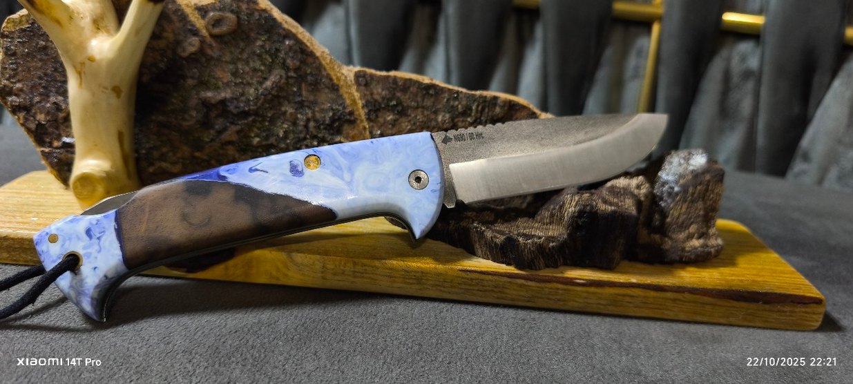 Açık hâli 26 cm kapalı hali 14,5 cm N690 Göktürk Usta çakı yeşil liner destekli sırttan kilitli. El dikimi kelebek deri kılıfı mevcuttur.