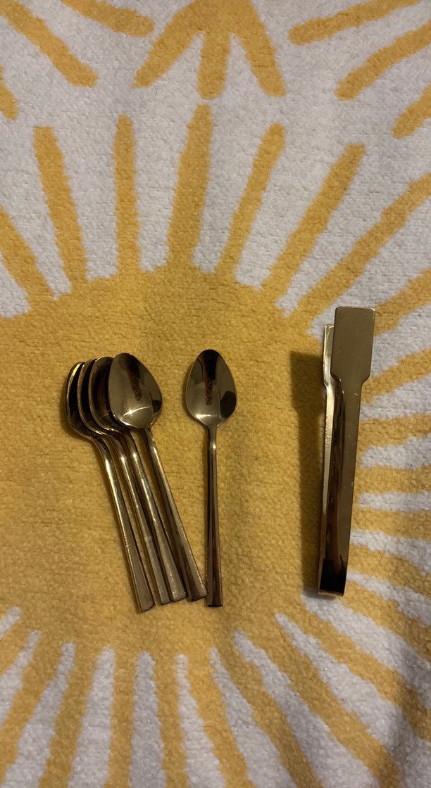 Gold Altın rengi 6lı çay kaşığı ve maşa