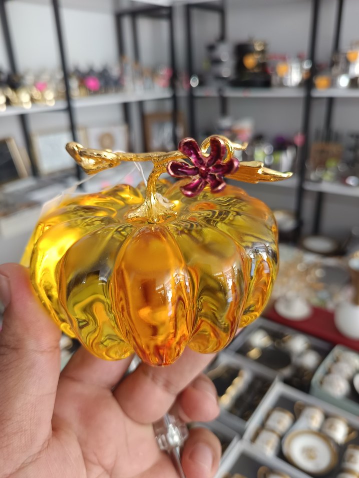 Altın sarısı bak kabagi, üstünde dal ve çiçek detaylı kristal biblo