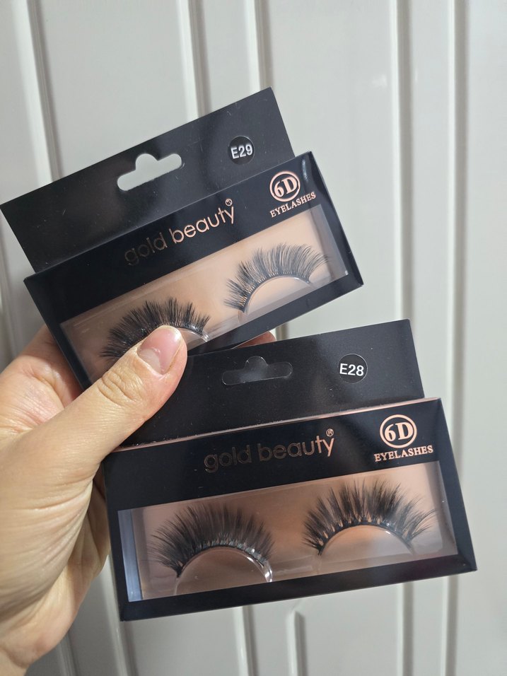 Gold Beauty markasına ait 6D sahte kirpikler, parlak altın kutusunda E28 ve E29 modelleriyle sunuluyor. Hiç kullanılmadılar 2 adet fiyatı