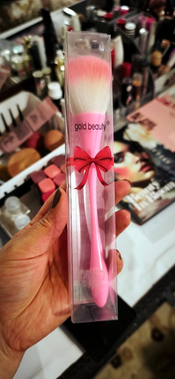 Gold Beauty markalı, yumuşak kıllara sahip pembe saplı renkli makyaj fırçası. allık fırçası sifir kutusunda