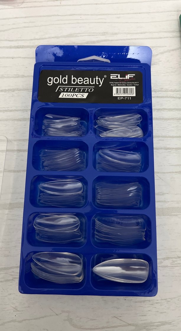 Gold Beauty markalı, stiletto şekilli 100 parça takma tırnak seti, şık görünüm sağlar. ✨