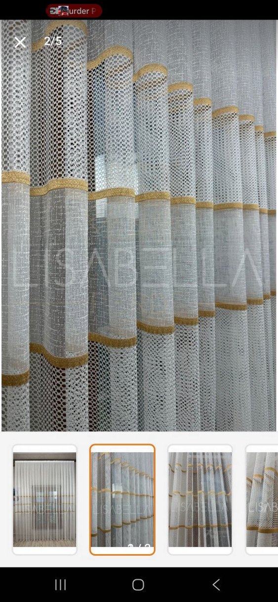 Gold ve beyaz çizgili, hafif ve şeffaf kumaştan modern tül perde. Işığı yumuşakça süzerek mekâna zarif bir doku katıyor. 260×250 sık pile 3 ay kullanıldı dekor sebebyle satıyorum 3200 diktirdim