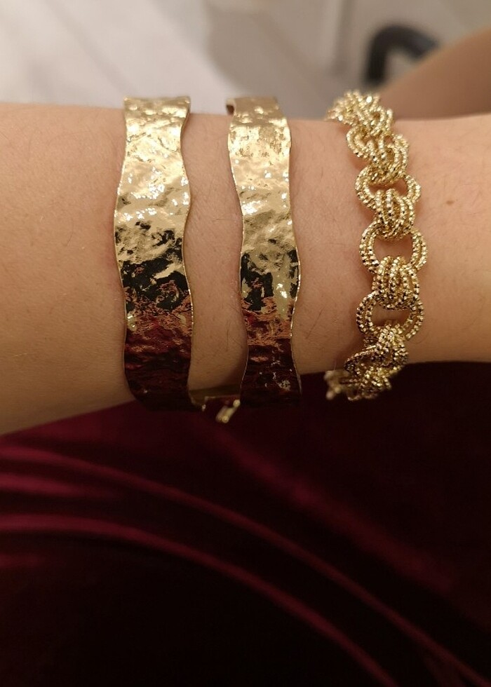 Gold renk iç içe geçmiş halkalardan oluşan çelik bileklik 1 kez taktım
