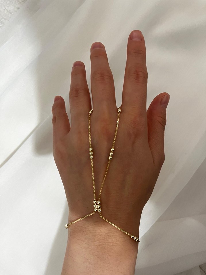 Altın rengi zincir detaylı kadın el zinciri, minimalist ve bohem tarzda günlük kullanım için uygundur. Hafif ve desensiz, retro bir hava katıyor. ✨