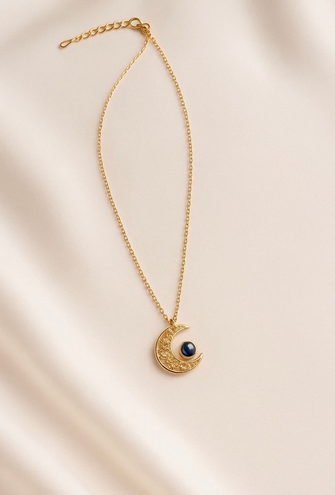 •Materyal: Paslanmaz çelik (kararma ve paslanma yapmaz) •Renk: Gold •Detay: Ay motifi içinde mavi taş ve özel projeksiyon sistemi ile 100 farklı dilde “Seni Seviyorum” yazısı •Zincir Uzunluğu: 44.5 cm (ayarlanabilir) •Özellikler: Suya, parfüme ve terlemeye dayanıklıdır. Uzun ömürlü kullanım sağlar. •Kullanım Alanı: Özel günlerde, sevgiliye anlamlı hediye, romantik sürprizler için mükemmel seçim