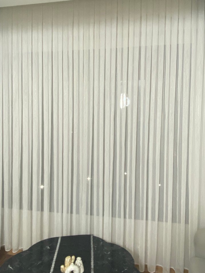 Gold çizgili , modern beyaz tül perde, doğal ışığın yumuşak geçişini sağlar. En 350 boy 255