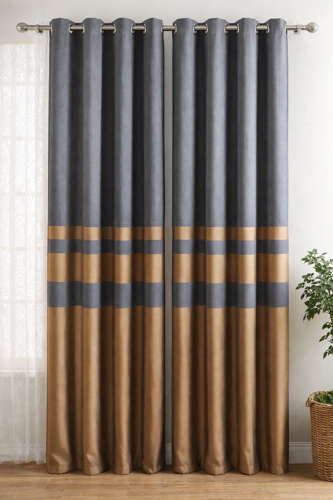 Çağdaş tarzda, metal halkalı bej ve gri çizgili fon perde. Modern bir dokunuş sağlar. Çok az kullanıldı Kusuru yok 2 Kanat fiyatıdır