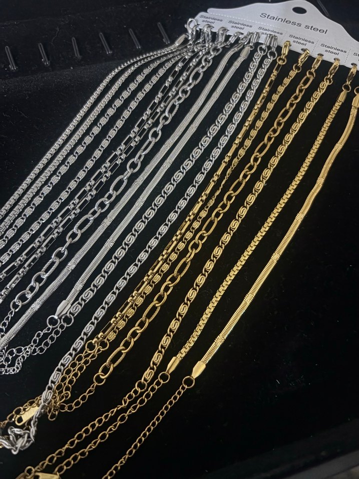Gold - Gümüş Renk Çelik Zincir Detaylı Bileklik Kolye
