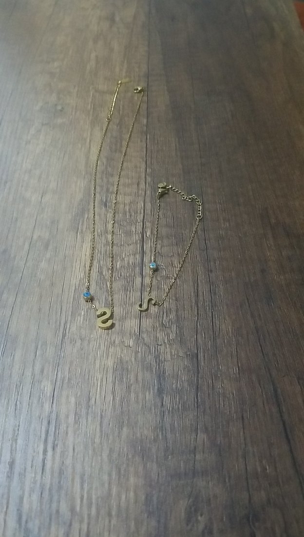 gold harf figürlü kolye ve bileklik takım set kolye 25 cm bileklik 20 cm ayarlanabilir ölçülü çelik set