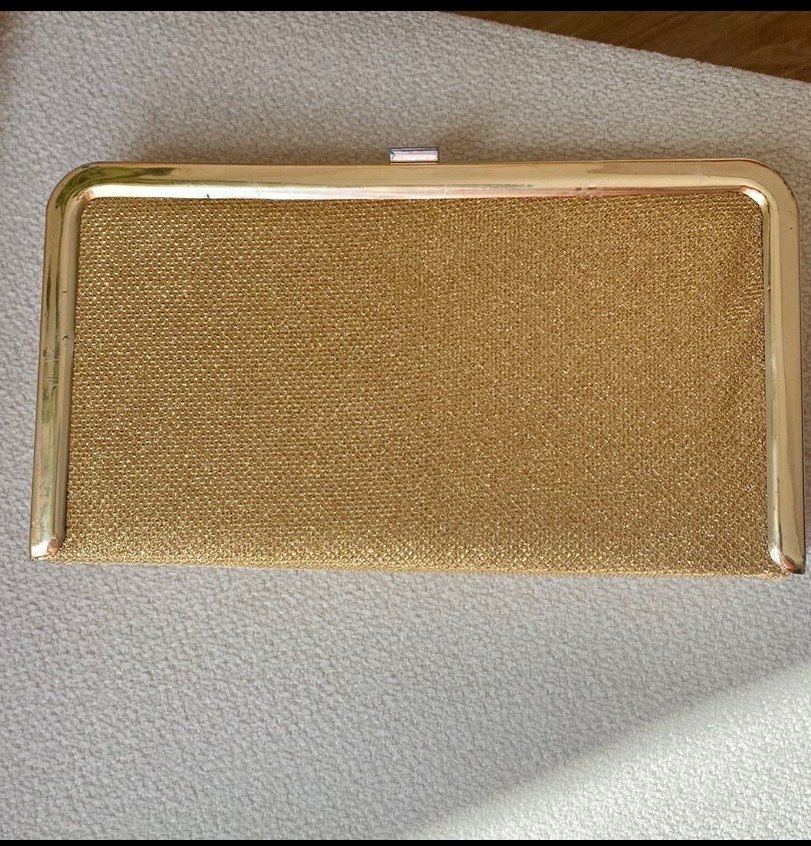 Gold, parlak yüzeyli ve cırt cırtlı kapamalı kadın portföy çanta, minimalist ve çağdaş tasarıma sahip, özel gün için kullanımı uygun