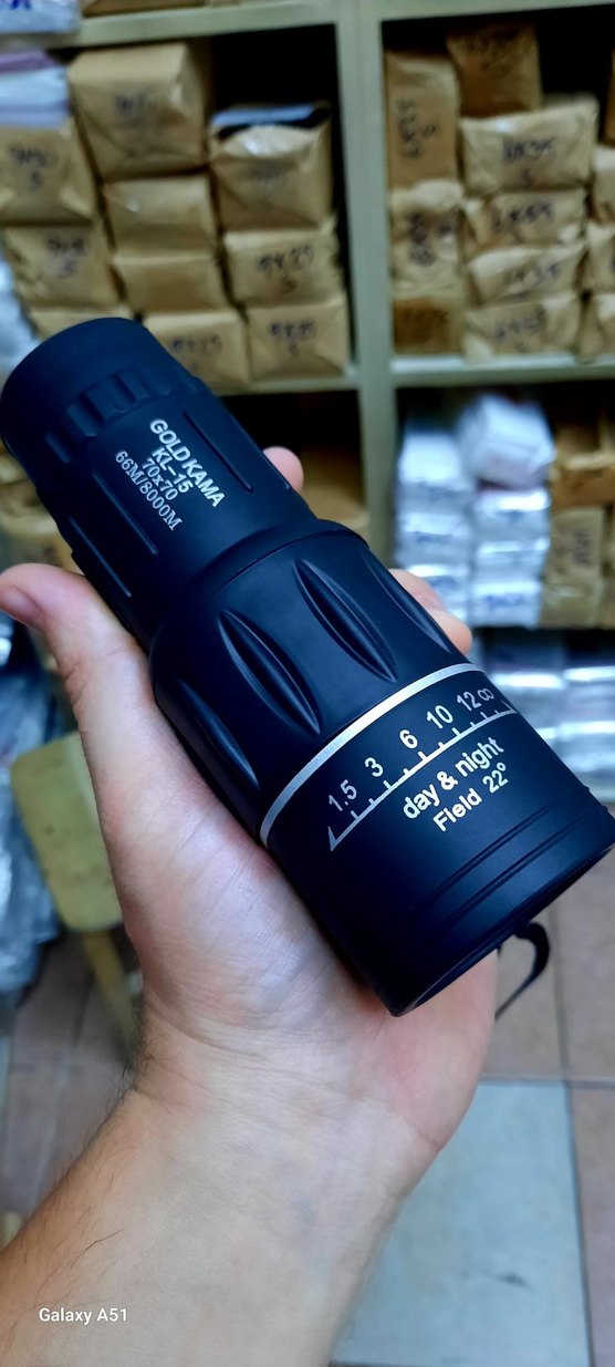 Gold Kama 6x40 monoküler dürbün, 1.5-12x büyütme ve 22° görüş alanı ile gündüz ve gece kullanımına uygundur. Siyah ve kompakt tasarıma sahiptir.