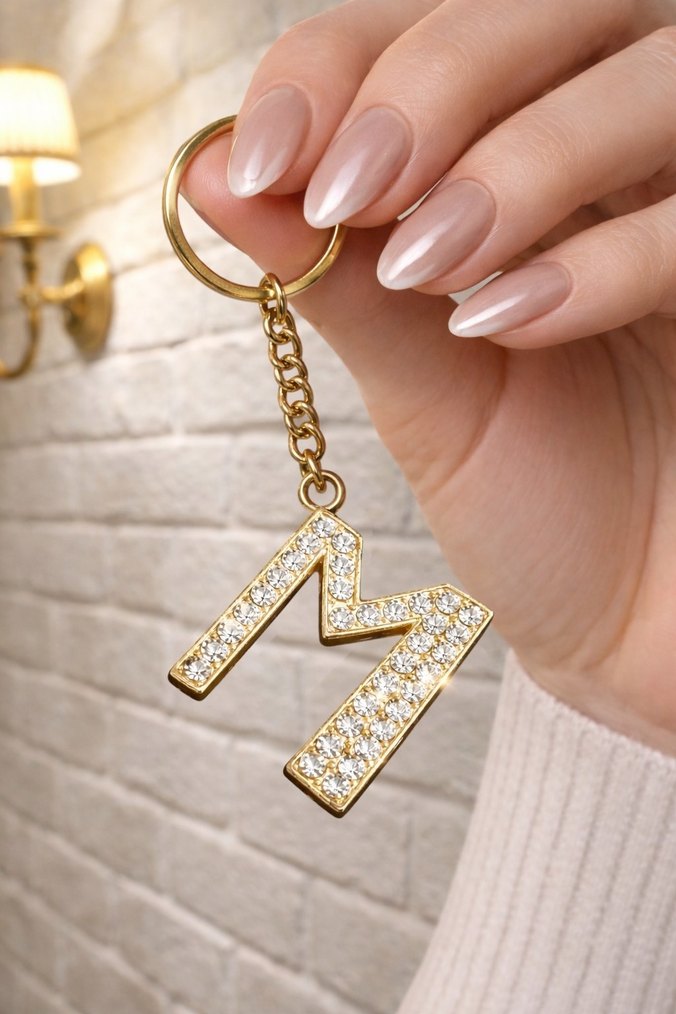 GOLD METAL ÜZERİNE SWAROVSKY TAŞLI M HARFİ ANAHTARLIK