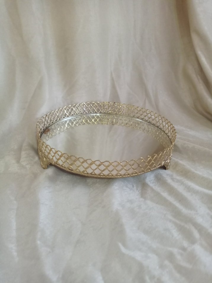 Parlak bej renkte, dantel detaylı ve bohem tarzda vintage bir tepsi, düğün aksesuarlarına zarif bir hava katıyor. sunumluk tepsi ortalama 27 cm