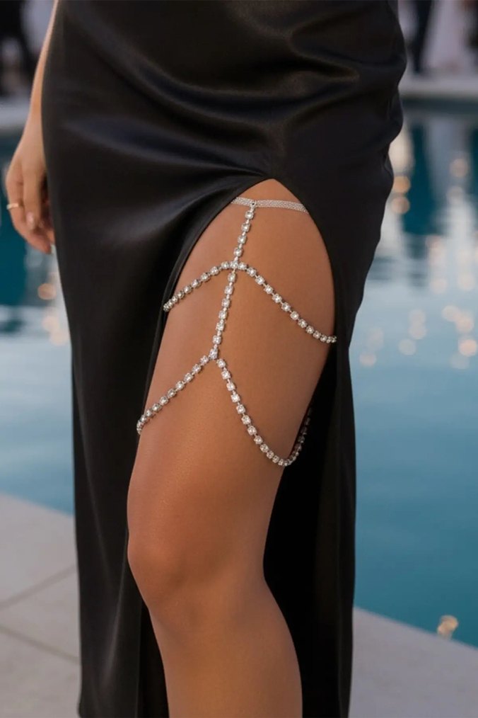 Parlak pullu ve yılan desenli altın renkli, cesur ve gotik tarzda parti için tasarlanmış vücut zinciri. ✨