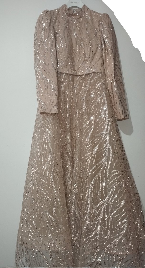 ürün 40 beden bi tık dar kalıptır.Sadece 1 kez kullanıldı hiçbir hasarı defosu yoktur,tertemizdir.İçi full astarlı 1 kat da kabarık durması için tülü vardır etek ucu grenlidir.prenses kollu üste oturan bir modeli vardır.Abiyeye uyumlu renkte 3 metrelik overloğu yapılmış janjan sifon şalı şalı da vardır şalını da beraberinde göndereceğim.