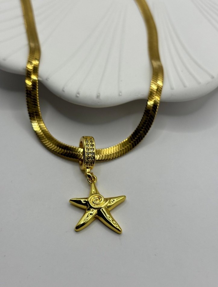 Gold renk İtalyan Çelik zincir yıldız model çelik kolye