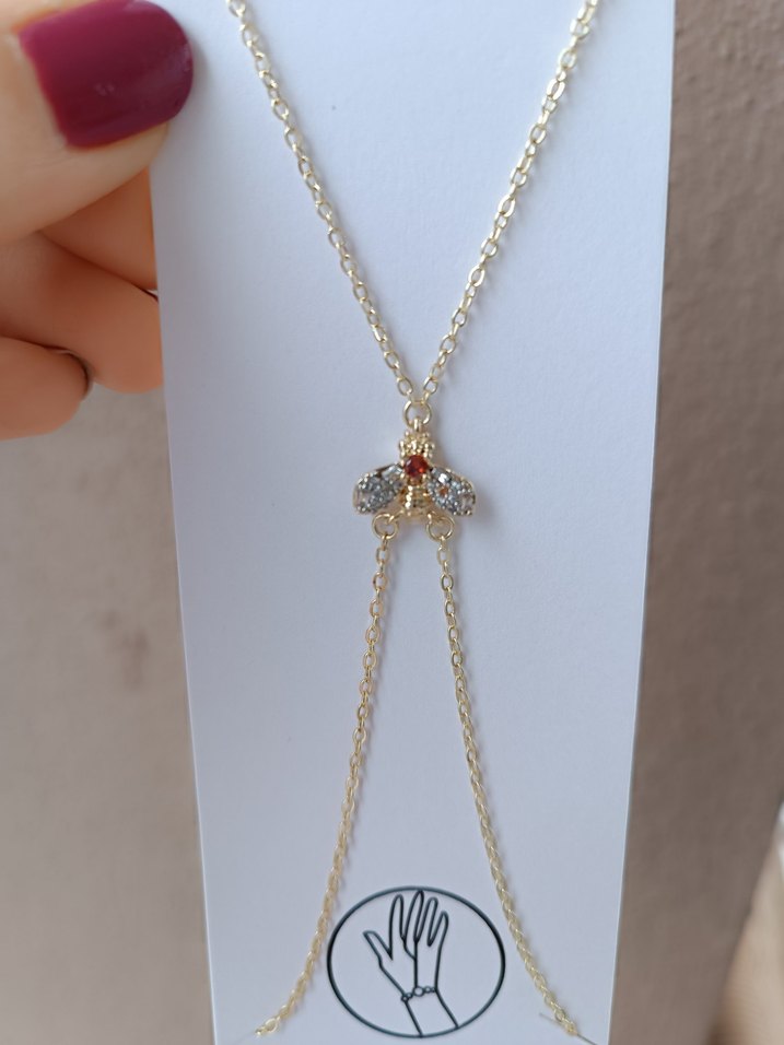 Altın renkli, taşlı arı model Şahmeran . Düğün ve klasik bohem tarz için uygundur. ✨