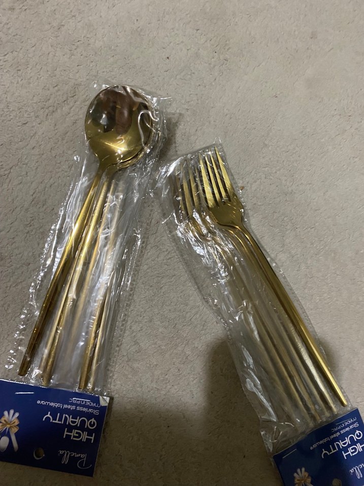 Parlak altın renkli, pürüzsüz yüzeyli çatal ve kaşık seti. Şık sofralar için uygundur. 6 adet kaşık 6 adet çataldan oluşmaktadır