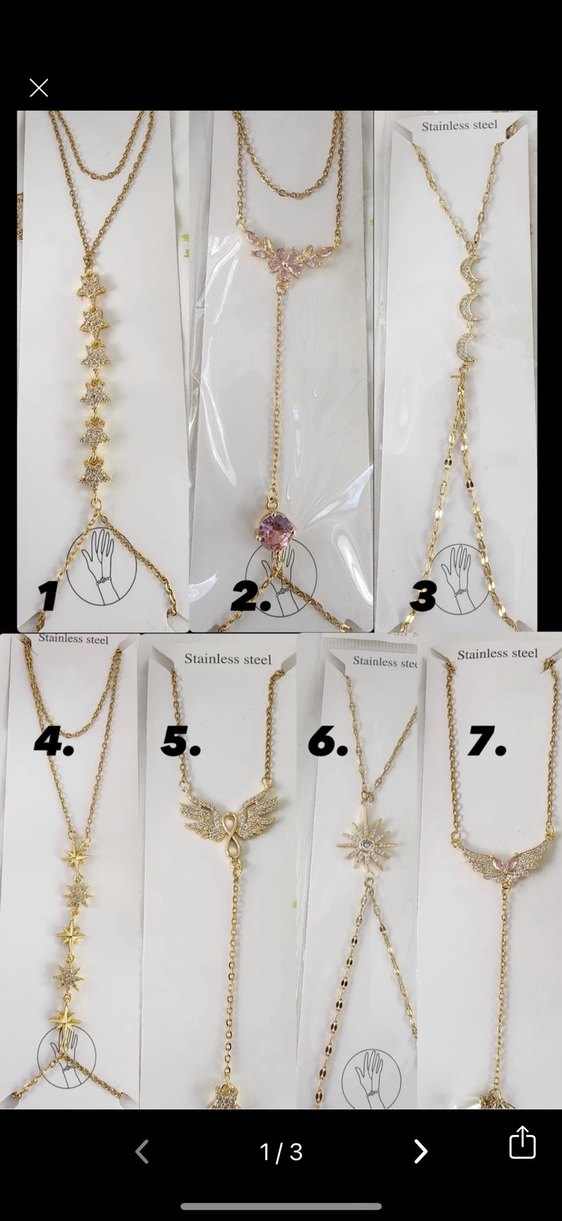 İlan açtırıp alabilirsiniz adet fiyatıdırBohem tarzda, işlemeli desenli ve zincir detaylı, açık altın renk kadın el zinciri. Paslanmaz çelikten, günlük kullanım için uygundur. ✨