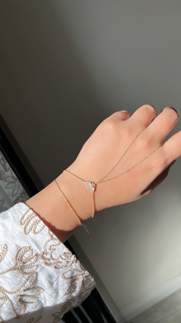 Altın renkli, ince zincir detaylı ve yılan derisi desenli kadın el zinciri, bohem tarzıyla günlük kullanıma uygundur. ✨