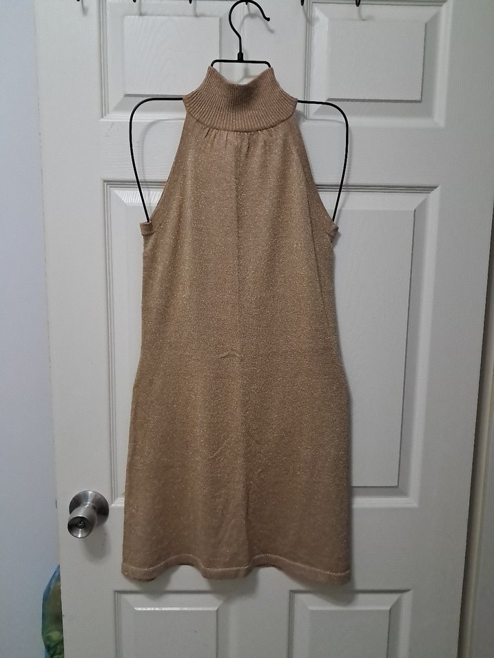 gold simli Midi Boğazlı Triko Elbise