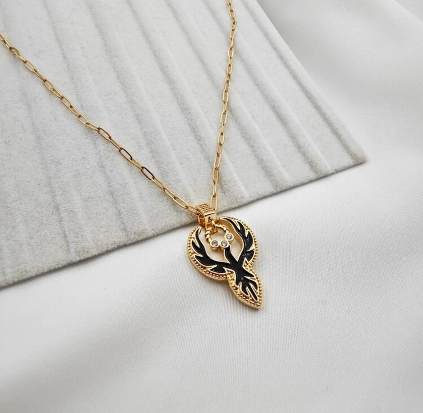 Gold Siyah Anka Kuşu Kolye
