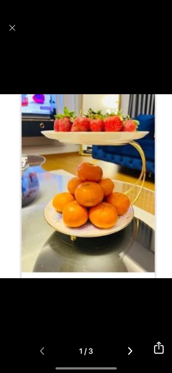 İki katlı, meyve standı, çilek ve mandalina gibi meyveler için uygundur gün masalarının süsleyicisidir . Hiç kullanılmadı 3 farklı model mevcut isteneler tekli de ilan açabilirim
