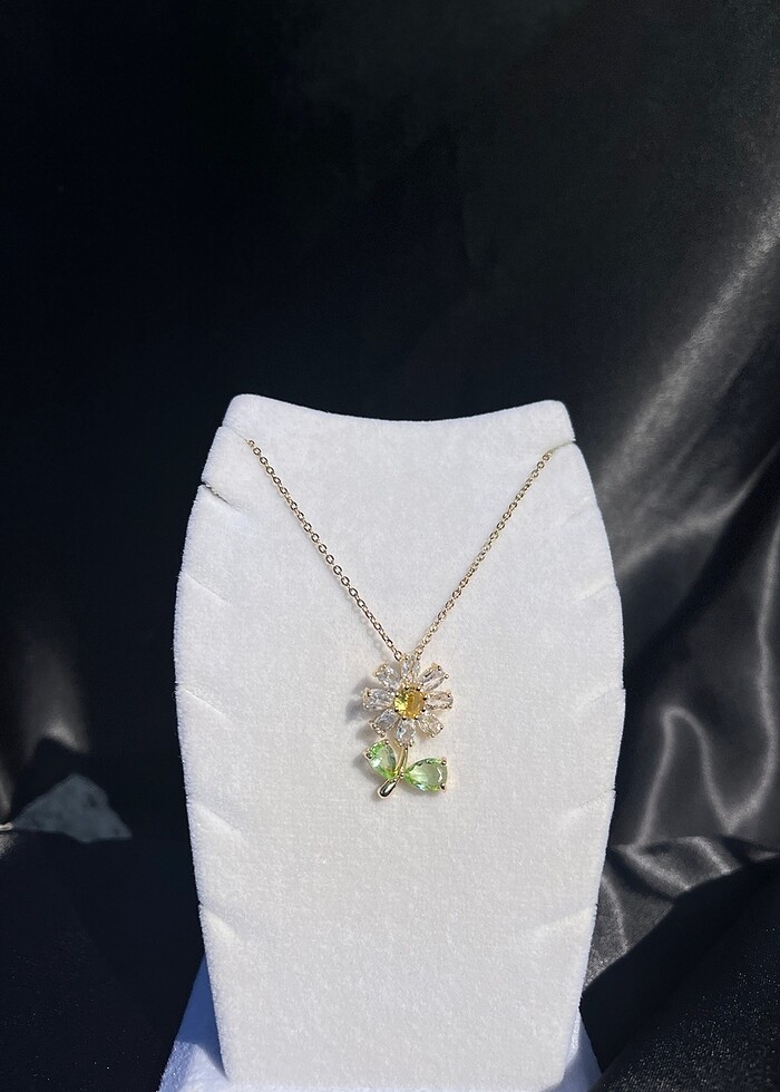 Gold Rengi Taşlı Papatya Kolye
