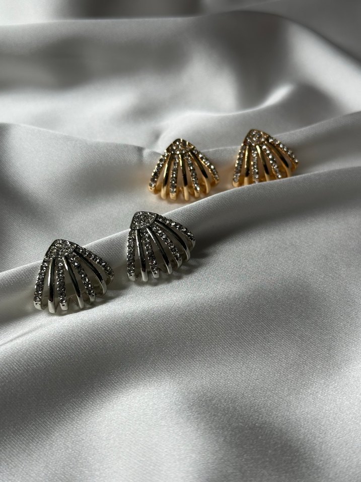 Altın ve gümüş tonlarında kısa mini küpeler, payetli ve işlemeli desenlerle gösterişli bir görünüm sunar. Düğün ve özel günler için uygundur. ✨