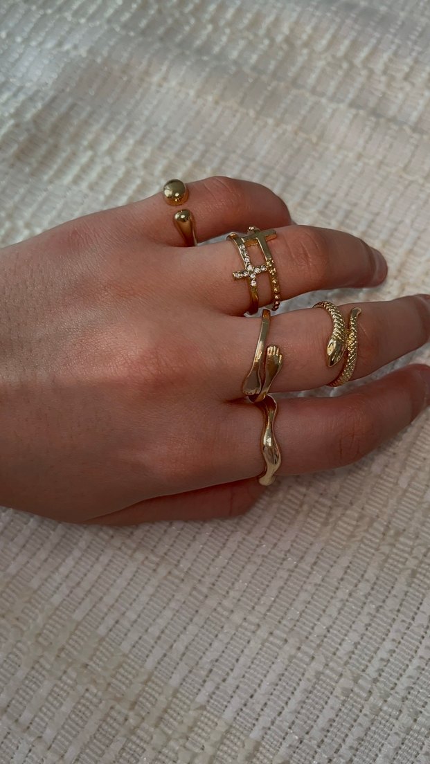 Altın renkli, boncuk detaylı ve parlak yılan desenli kadın yüzük, minimalist ve şık tarzlar için uygundur. ✨