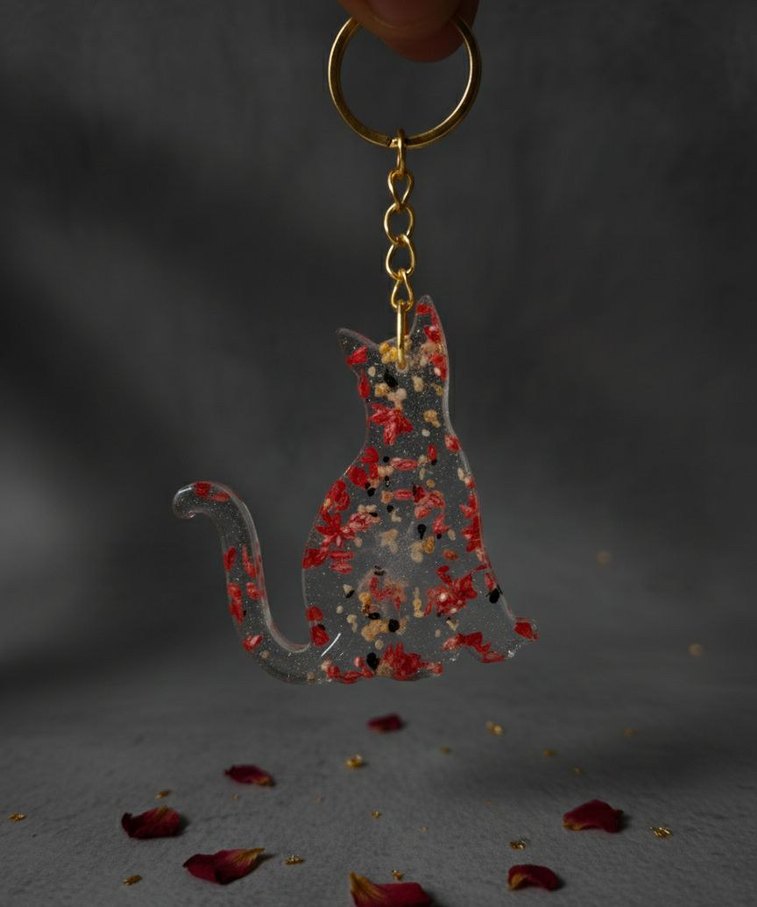 Gold renkli, çiçek detaylı kedi figürlü anahtarlık, altın renk zincirle birleşiyor. Goth ve bohem tarzlara uygun bir aksesuar.