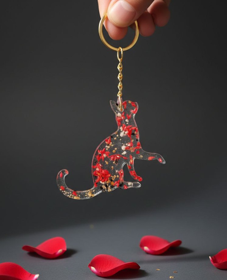 Gold zincir detaylı kedi Anahtarlık el yapımı reçineden