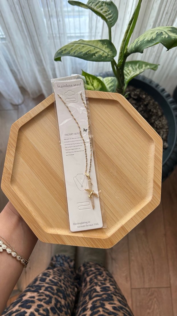 Paslanmaz çelikten yapılmış, zincir detaylı ve minimal haç figürlü altın renkli midi uzunlukta kadın kolye. Günlük kullanıma uygundur. ✨ Marka temsilidir