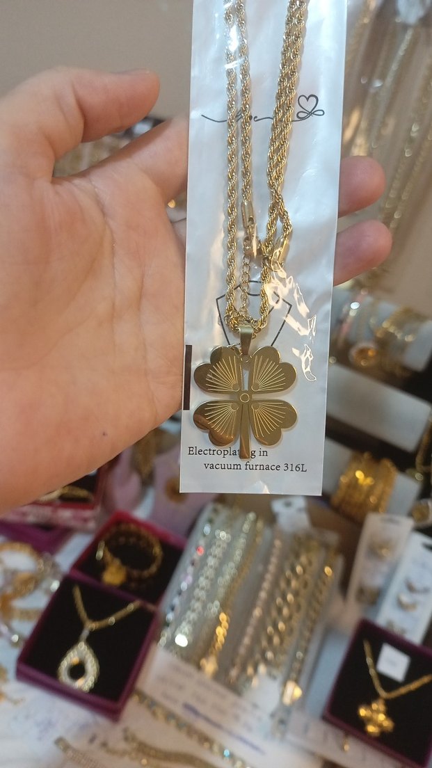 Parlak altın renkte, zincir detaylı, yonca şeklinde kolye. Elektroplak 316L paslanmaz çelikten üretilmiştir. Günlük kullanım için bohem Paris tarzında.