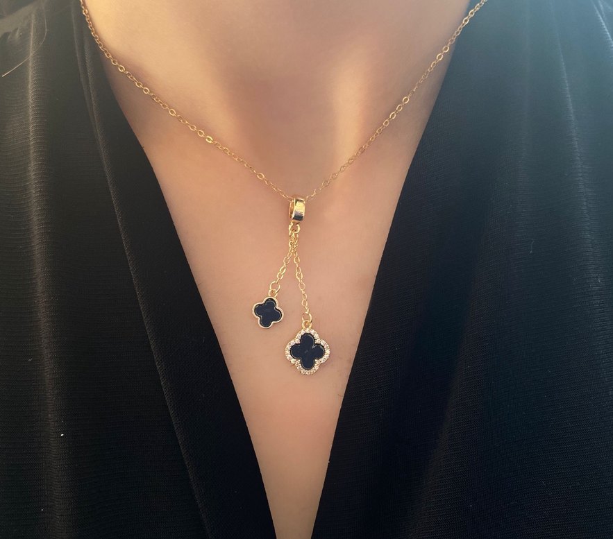 Gold zincir detaylı, midi uzunlukta, koyu renkli minimal tasarımlı kolye, günlük kullanıma uygun. ✨