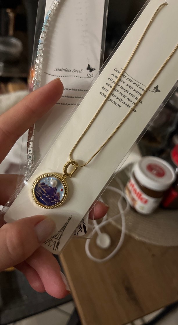 Paslanmaz çelikten, zincir detaylı ve baskılı madalyonlu altın renk midi kolye. Günlük kullanıma uygun bohem tarz. ✨
