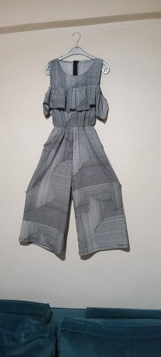 Golden Apple siyah renkte, arkadan fermuarlı, cepli ve fırfırlı detaylara sahip uzun ve bol kesim kadın tulumu. Yuvarlak yaka ve ince askılı kollara sahiptir. Günlük kullanım için uygundur. ✨