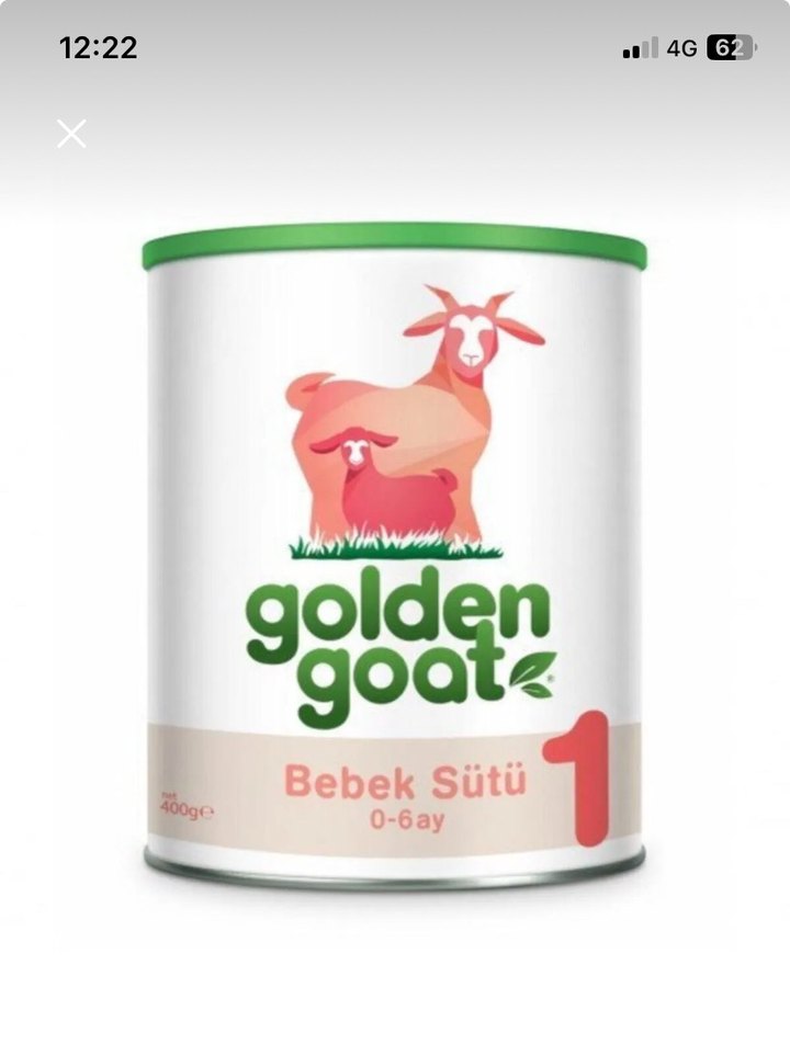 Golden Goat markalı, 0-6 ay bebekler için 400g kutuda pastel altın renkli bebek sütü. Erken beslenme için uygundur. Üründen iki kaşık kullanıldı buzdolabında muhafaza ediliyor