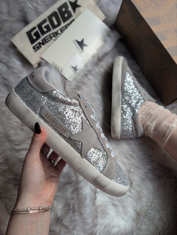 Golden Goose Deluxe Simli Gümüş Kadın Spor ayakkabı - Görsel 1